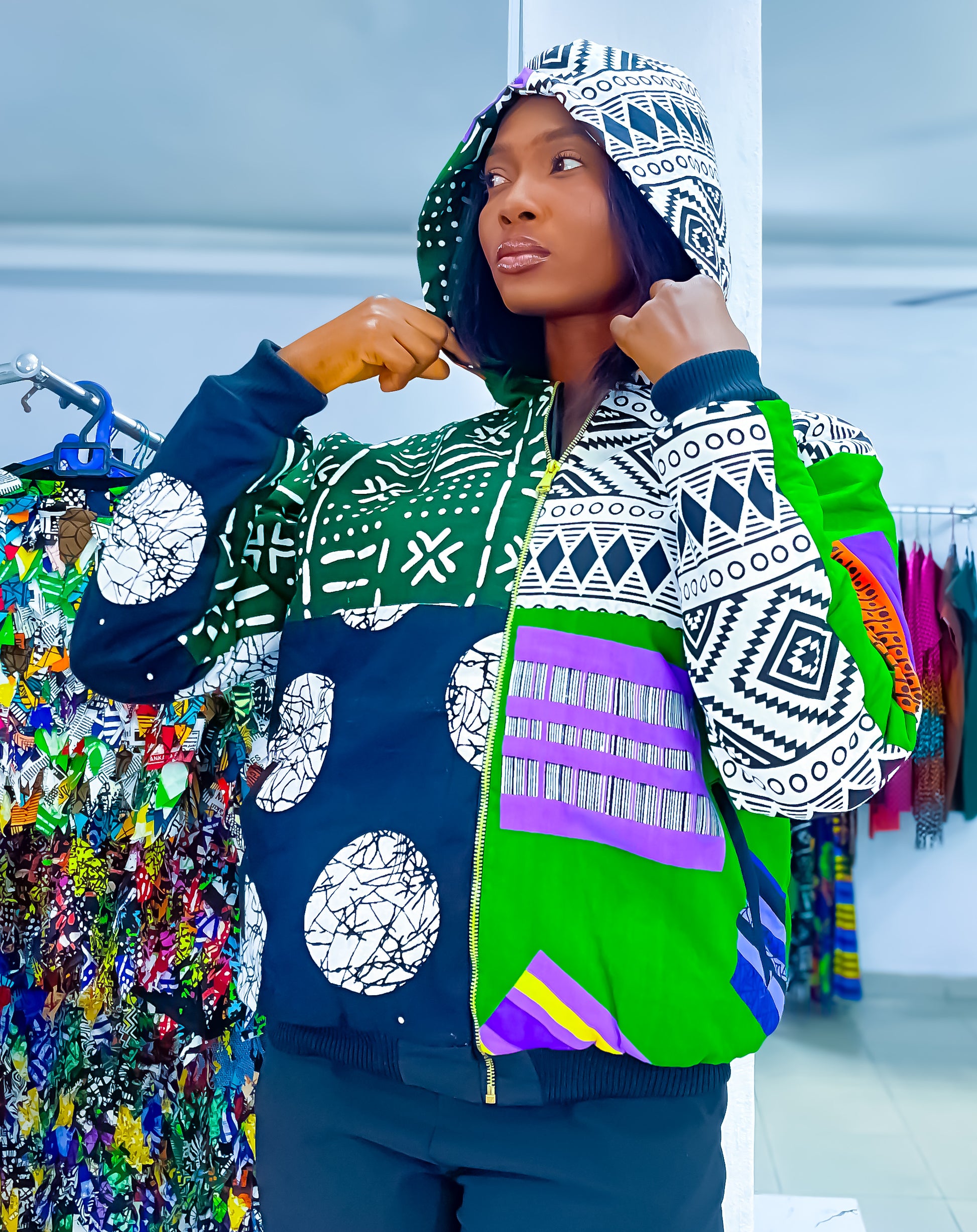 Breeze through summer with the KIM HOODIE, a beautiful blend of 100% ANKARA fabric and soft crepe that offers both comfort and style. Available in a variety of vibrant colors and patterns, this flowy midi-length dress is the perfect choice for those who love to keep it casual yet chic.